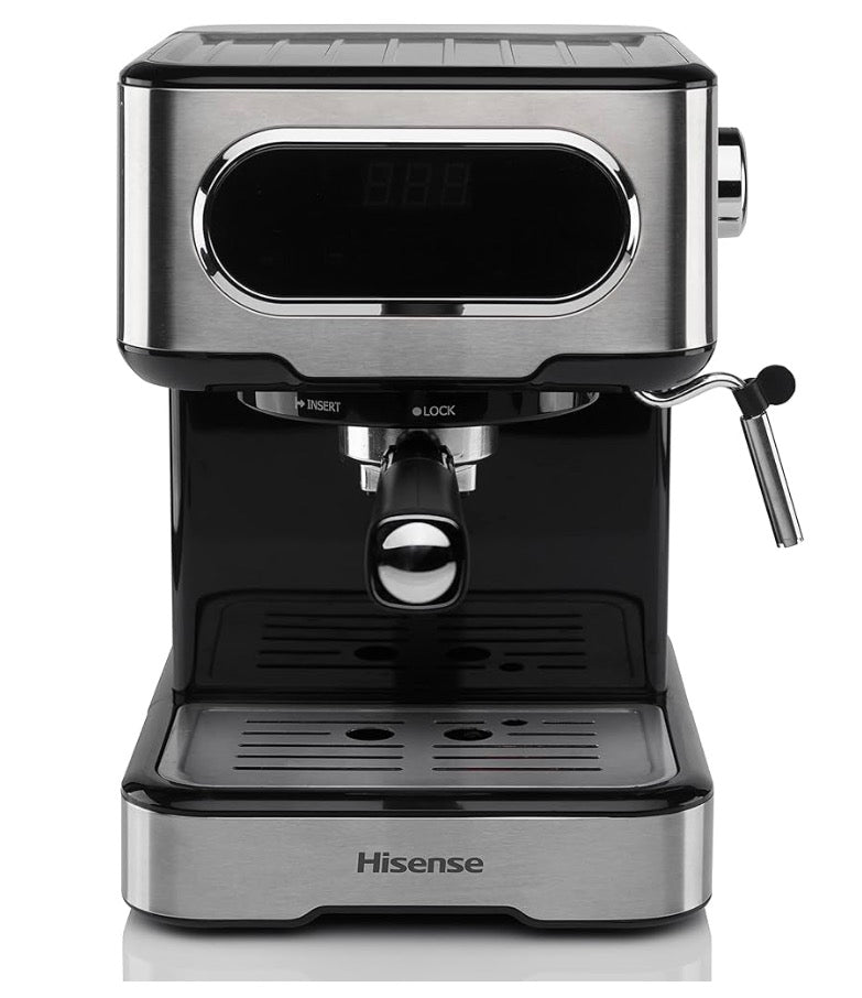 Hisense, HESCM15DBK, Macchina da caffè espresso manuale, macinato e compatibile con cialde ESE 44 mm, Pressione 15 bar, Schermo Touch, 1100W, Silver, 27.4x30x27.2 cm